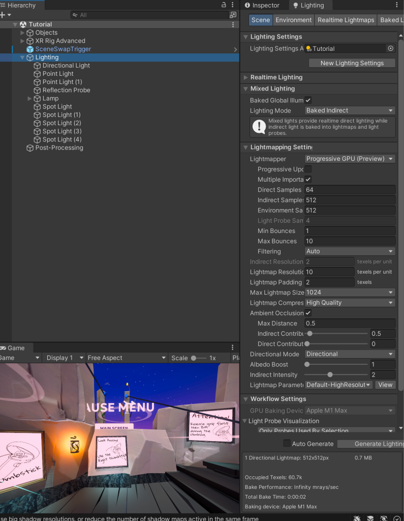 I am adding lights on the dog and the door to let them stand out so that the player could find it easier.